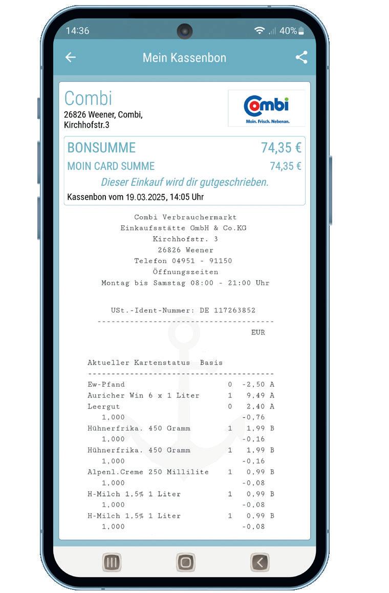 ab einem Verkaufswert von 49.99 €. Der Rabatt wird an der Kasse abgezogen. Gültig für alle MOIN CARD-Kunden.