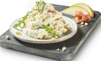 Speckkartoffelsalat Bester Kartoffelgenuss mit Speck und Zwiebeln in einer Essig und Öl Marinade mit Eigelb