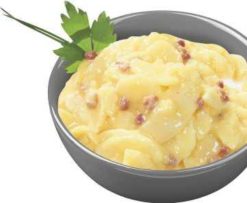 Speckkartoffelsalat Bester Kartoffelgenuss mit Speck und Zwiebeln in einer Essig und Öl Marinade mit Eigelb