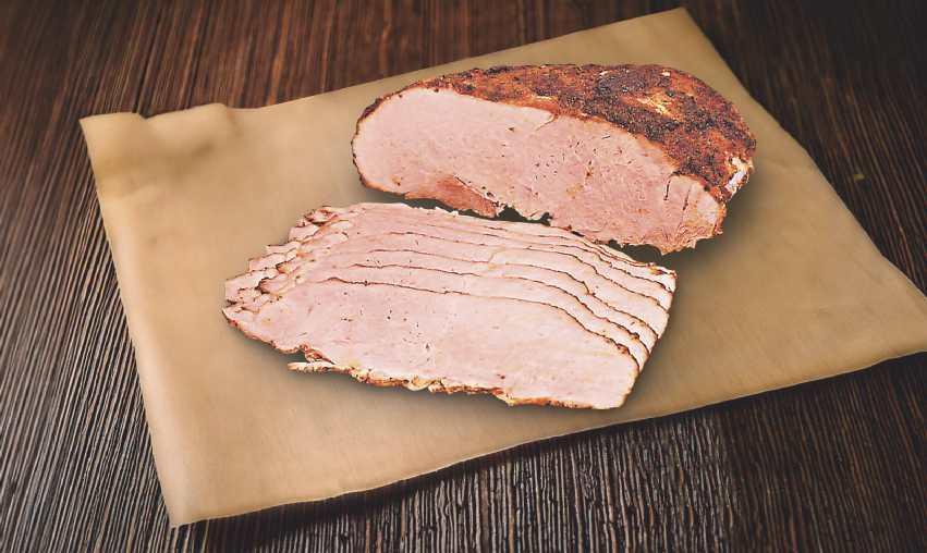 Königsschinken fett- und salzarm, jedoch durch die feine Kräuternote und den milden Buchen- und Eichenholzrauch besonders würzig 100 g (1 kg = 29.90)