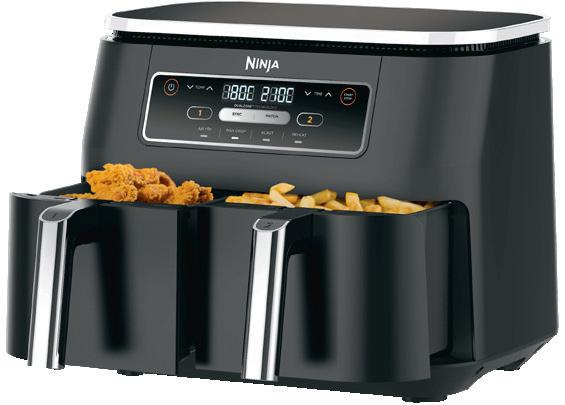 AF200EU Foodi 4-in-1 Dual Zone ,Heißluftfritteuse mit 7,6 l Fassungsvermögen ideal für Familien, 2 separate Körbe ermöglichen das gleichzeitige Zubereiten verschiedener Speisen, Spart bis zu 75 % Energie im Vergleich zu einem Umluftofen. Art.-Nr.: 6000295348 UVP
