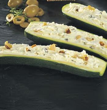Aus eigener Herstellung: ZucchiniSchiffchen mit Schafskäse-OliveCreme, ideal zum Grillen 1kg = 19,90 100g
