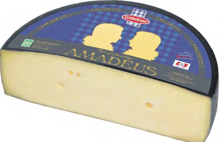 Österreichischer Schnittkäse Amadeus aus Alpenmilch hergestellt und 8 Wochen auf Fichtenholzbrettern gelagert, 50% Fett i.Tr. 1kg = 16,90 100g