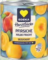 Pfirsiche halbe Frucht oder in Schnitten, gezuckert, erntefrisch verarbeitet 1kg = 3,98 820g Dose 1 99