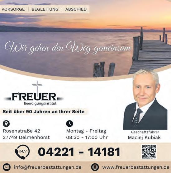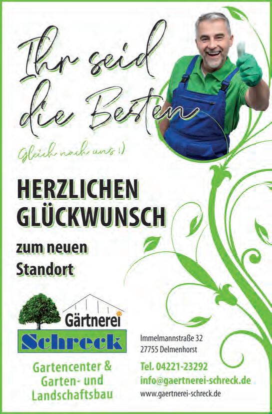Uhr wird im Commedia Veranstaltungszentrum (Lahusenstraße 25) über die Chancen und Vorteile der Glasfasertechnologie aufgeklärt. Im Fokus stehen Themen wie die Vorzüge des schnellen Internets, die Details zum Hausanschluss, die Installation der Endgeräte und begleitende Serviceleistungen. eal Mit dem Frühjahr droht das Tierheime in Delmenhorst erneut an seine Kapazitätsgrenzen zu stoßen. Grund ist die unkontrollierte Vermehrung frei umherstreifender Katzen. Der Fachdienst Veterinärund Ordnungswesen der Stadt weist deshalb vor Beginn der Fortpflanzungszeit eindringlich auf die geltende Kastrations- und Kennzeichnungspflicht für FreigängerKatzen hin. Wer die Pflicht ignoriert, begeht eine Ordnungswidrigkeit und riskiert ein Bußgeld von bis zu 5.000 Euro. Ein Flyer mit Hinweisen steht unter delmenhorst.de/katzen zur Verfügung. eal