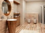 MM-PP1188, Bezug Stoff Mammut nougat, mit Kontrastnaht beige, Holzfuß Wildeiche, best. aus: Canapé mit Armteil links, 2,5-Sitzer ohne Armteile und 1,5-Sitzer-Kombielement mit Anstellhocker rechts, inklusive Kopfteilverstellung an allen Elementen, Stellmaß ca. 185x341x243 cm. Bezug: 100% Polyester. 16640128/00