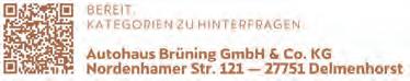 Zurzeit gelten Anzeigenpreisliste Nr. 52 vom 01. Januar 2025 und unsere darin abgedruckten AGB. Falls Sie dieses Produkt nicht mehr erhalten möchten, bitten wir Sie, einen Werbeverbotsaufkleber mit dem Zusatzhinweis „Keine kostenlosen Zeitungen“ an Ihrem Briefkasten anzubringen. Weitere Informationen finden Sie auf dem Verbraucherportal www.werbung-imbriefkasten.de Internet: www.delmereport.de Druck: DruckHaus Delmenhorst GmbH