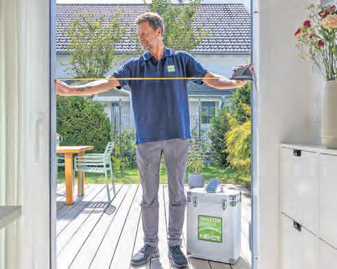 Als wirksamer Insektenschutz ohne die Verwendung chemischer Mittel haben sich Rahmen mit speziellem Gewebe für Fensterund Türöffnungen bewährt. Auf diese Weise bleiben die Insekten draußen, während Tageslicht und frische Luft ungehindert ins Innere gelangen. Für jede Öffnung im Haus gibt es geeignete Systeme von Dreh-, Pendel oder Schiebetüren für den Balkon und die Terrasse bis zu Spannrahmen und stufenlos verstellbaren Rollos für die Fenster, die es auch für