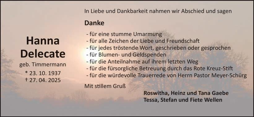 Wer Interesse an der Weiterbildung zur Pflegehilfskraft in der kultursensiblen Pflege der Malteser Delmenhorst hat –Ausbildungsstart ist der 18. August 2025 – kann einen Beratungstermin per E-Mail an heike.walter@malteser.org vereinbaren. DR