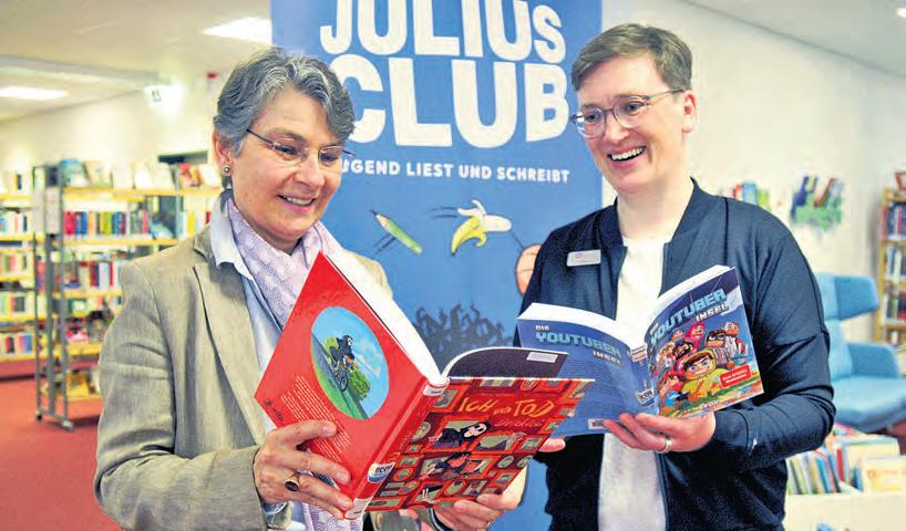 nicht nur Vertreter der VGH, der Büchereizentrale und Bibliotheken, sondern auch Jugendliche. Und deren Stimme hat bei der Entscheidung das meiste Gewicht, wie Schönherr weiß. Zur Auswahl stehen Romane, Sachbücher, Comics und Mangas, Hörbücher und E-Books. Und so funktioniert der Sommerleseclub: Wer mitmachen möchte, bekommt bei der Anmeldung eine Clubkarte. Für jedes beendete Buch füllt man einen Bewertungsbogen aus und bekommt einen Stempel in den Clubausweis. Wer mindestens zwei Bücher geschafft hat, erhält ein Diplom, bei mindestens fünf Büchern gibt es ein Vielleser-Diplom. Die Teilnahme ist komplett kostenlos. Der Julius-Club steht in diesem Jahr unter dem Motto „Julius mischt mit“. Die Kinder und