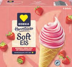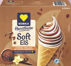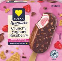 EDEKA Herzstücke White Choc & Cookie oder Crunchy-YoghurtRaspberry Stieleis Eis mit Schokoladensauce oder Joghurt und mit Himbeersauce verstrudelt, gefroren 1l = 6,92/9,22 4/3x90ml = 360/270ml Packung