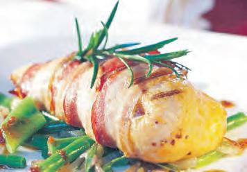 Pangasiusfilet im Speckmantel feines Pangasiusfilet, praktisch grätenfrei und ohne Haut, würzig-pikant mariniert und mit Speck umwickelt 1kg = 16,90 100g 169