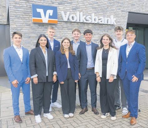 Herzlich willkommen in der Volksbank-Familie! Auch in diesem Jahr haben sich neun engagierte junge Menschen entschieden, ihre berufliche Zukunft bei der Volksbank eG Oldenburg-Land Delmenhorst zu starten. In den kommenden drei Jahren erhalten die angehenden Bankkaufleute spannende Einblicke in Bereiche wie Privat- und Firmenkundenberatung, Vermögensanlagen, Kredite, Kontoführung und Zahlungsverkehr. Ergänzt wird die Ausbildung durch Schulungen und Seminare, die gezielt fördern. In eigenen Projekten übernehmen die Auszubildenden Verantwortung und zeigen, was in ihnen steckt –mit Ideen, Einsatz und Kreativität.