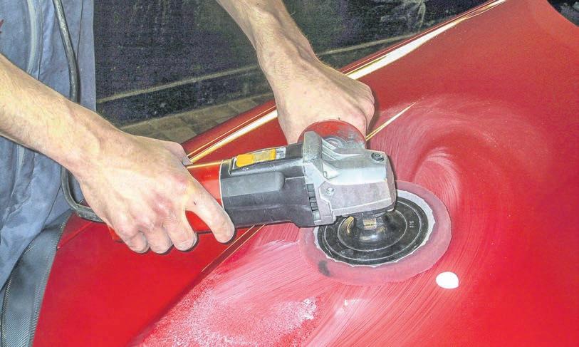 chen „Hauptpflege“ wird das Fahrzeug zunächst einer intensiven maschinellen Lackreinigung unterzogen, die auch die Verschmutzungen, die sich in den Lackporen festgesetzt haben, entfernt. Danach werden per Hand mit einem Schleifband sowie speziellen Grobund Feinschleifmitteln die Grauschleier sowie leichte Oberflächenkratzer bearbeitet und eliminiert. Der nächste Aufbereitungsschritt ist eine intensive Lackpolitur für den Tiefenglanz. Dann folgt die Lackversiegelung. Hier erhält der Wagen durch das Auftragen der Versiegelungsschichten eine glasartige vollkommen glatte Oberfläche. Jetzt sind die Lackporen geschlossen und bieten einen umfassenden