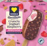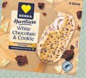 EDEKA Herzstücke White Choc & Cookie oder Crunchy-YoghurtRaspberry Stieleis Eis mit Schokoladen- oder Himbeersauce verstrudelt, gefroren 1l = 11,07 3x90ml = 270ml Packung