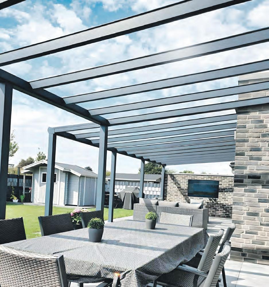5,06 x 3,5 m, Aluminiumprofil (pulverbeschichtet) mit Verbundsicherheitsglas.