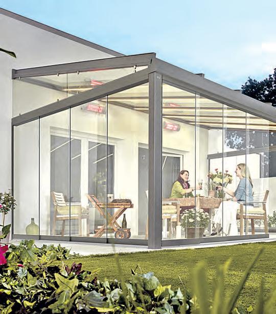 nen. Ihr transparenter Charakter sorgt dafür, dass sie sich harmonisch in den Garten einfügen und weiterhin Licht in die dahinterliegenden Innenräume gelangt. Ergänzungen wie integrierte LED-Beleuchtung, Heizstrahler oder verschiebbare Glaselemente erweitern die Nutzungsmöglichkeiten. Auf diese Weise entsteht ein ganz persönlicher Wohlfühlplatz im Freien, der die Wohnqualität steigert und den Alltag bereichert. kp