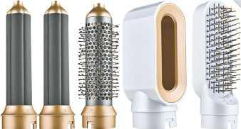 WarmluftMultihairstyler** 5 wechselbare Stylingaufsätze (2 „selbsteindrehende“ Lockenaufsätze Ø 28 mm, Rundbürste Ø 45 mm, Volumenbürste, Haartrockneraufsatz), 3 Temperaturstufen, Überhitzungsschutz, Kabellänge 2 m, Drehgelenk, 1.000 W