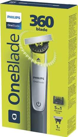 OneBlade Face 360 blade 5 in 1 Rasierer QP2734/23 360-Grad-Klinge, zweifach-Schutzsystem, verstellbarere 5 in 1 Kammaufsatz, nass und trocken verwendbar, Li-Ionen Akku, bis zu 60 Minuten Laufzeit bei 4 Stunden Ladezeit