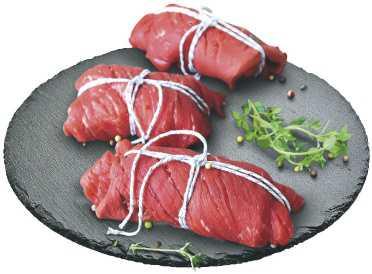 Rinderrouladen, Braten oder Gulasch aus der Keule, zart und mager, aus Frankreich 100 g (1 kg = 11.90)