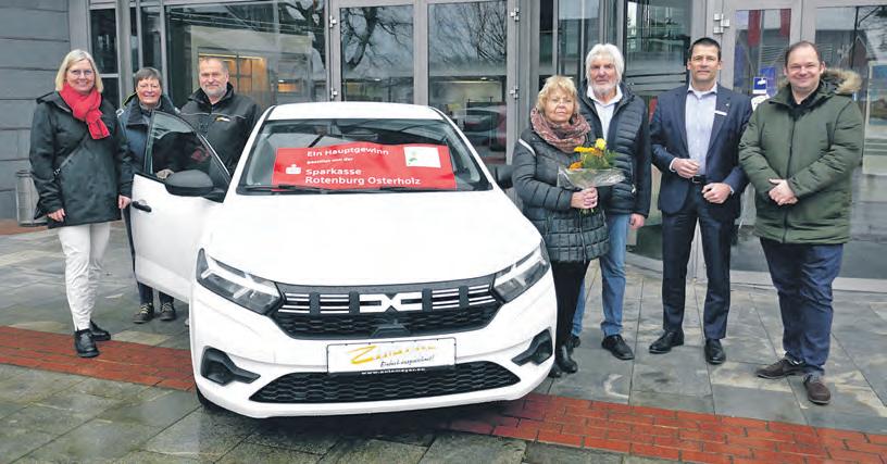Lose gekauft. „Zuerst waren es einige Nieten und dann stand auf einem Los die Zahlenreihe 176 000“, so Werner Markwardt. Damit ging er zurück zur Losverkäuferin Ulrike Morisse. Sie stellte dann fest, dass es sich um den Hauptgewinn, den weißen Dacia Sandero handelte. Die Freude war dann groß, so das Paar aus Holste. Das 36. Mal hatte die Sparkasse Rotenburg-Osterholz das Auto für die KlosterholzTombola gestiftet. Anja Kalski vom Verein Klosterholz-Tombola dankte dem Vorstands-