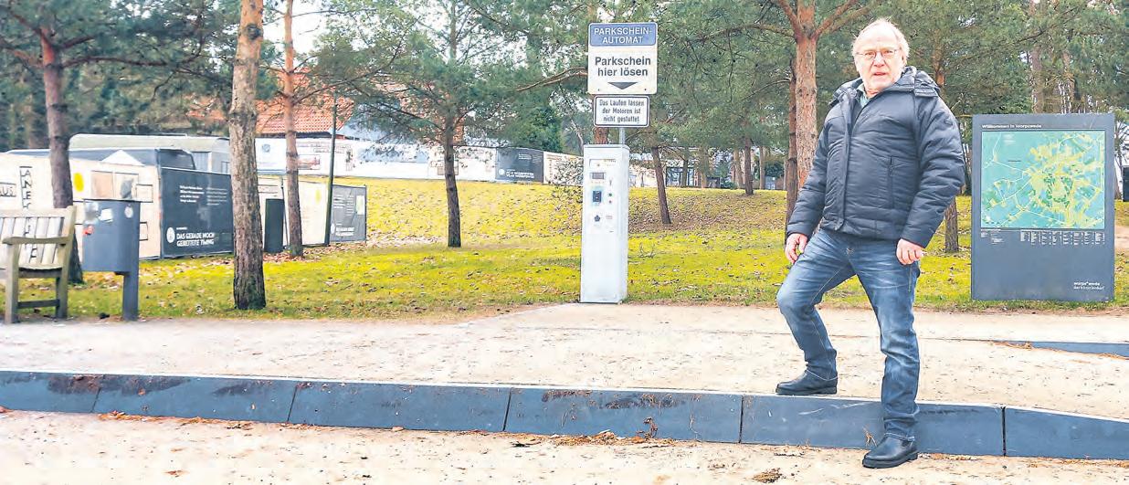 WORPSWEDE - Noch kann man die Einbuchtungen in den Grasflächen des großen Parkplatzes an der Bergstraße erkennen. Dort standen einst die Parkautomaten. Eine bessere Lösung als die heute bestehende, findet Hans-Helmut Pein, Vorsitzender des örtlichen Seniorenbeirates. Nun findet man einen Parkautomaten relativ mittig, ein weiterer steht in der Nähe der öffentlichen Toilette. Insbesondere ein Umstand macht Pein zu schaffen: Der mittige Automat, der alleinige, an dem eine EC-Karten-Zahlung möglich ist, teilt sich den Standort mit einer Reisebushaltestelle. Die Höhe von Bussen macht es nötig, dass die Haltestelle erhöht ist. Die Stufe ist