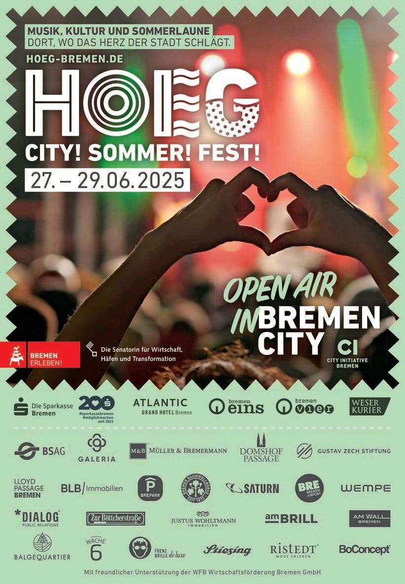 Anzeigen: Tel. (0 47 91) 9 65 69 00, Fax 9 65 69 10 Zurzeit gelten Anzeigenpreisliste Nr. 52 vom 01. Januar 2025 und unsere darin abgedruckten AGB. Falls Sie dieses Produkt nicht mehr erhalten möchten, bitten wir Sie, einen Werbeverbotsaufkleber mit dem Zusatzhinweis „Keine kostenlosen Zeitungen“ an Ihrem Briefkasten anzubringen. Weitere Informationen finden Sie auf dem Verbraucherportal www.werbung-im-briefkasten.de Internet: www.hammereport.de, www.wuemmereport.de Druck: DruckHaus Delmenhorst GmbH