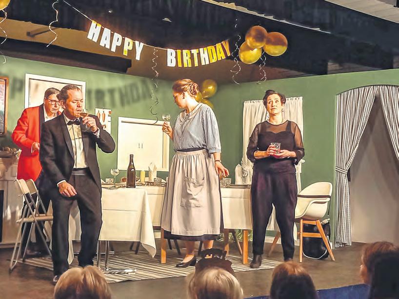 germutter Hetti (Sonja Brüggemann) kulminiert. Nach der Pause gibt es für das Publikum auch schon beinahe besinnliche Momente. Erneut beweist Kohlmann ein sicheres Händchen für Komödien, die dem Publikum schmecken. Doch auch das Ensemble arbeitet gut zusam-