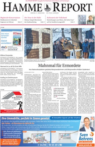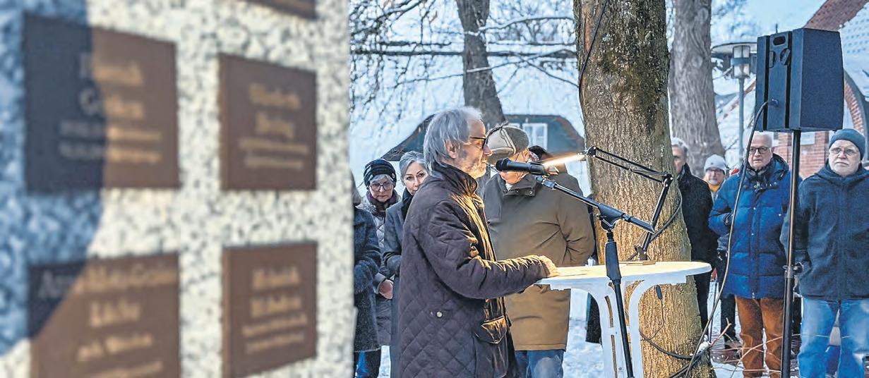 WORPSWEDE – Menschen strömen in Richtung des Rathauses, die dort gehisste Deutschlandflagge weht auf Halbmast. Über 100 Menschen sind gekommen, um der Einweihung des auf dem Rathausgelände eingerichteten Gedenkorts für die in der Zeit des Nationalsozialismus getöteten oder in den Tod getriebenen Bürgerinnen und Bürger der jetzigen Gemeinde Worpswede beizuwohnen. Es ist der 27. Januar, Gedenktag zur Befreiung des Konzentrationslagers Auschwitz im Jahre 1945 und Holocaustgedenktag. Das Mahnmal besteht aus zwei Stelen: Eine Tafel aus hellgrauem Granit trägt die Namen, Geburtsund Todesdaten von 20 Worpsweder Bürgerinnen und Bürgern, die der Tötungsmaschinerie der Nationalsozialisten zum Opfer fielen. Platz für weitere Daten gibt es noch: „Wir gehen davon aus, dass sich noch mehr finden“, erläutert Burckhard Rehage, Sprecher der für das Projekt verantwortlichen Arbeitsgruppe. Auch für jene, deren Geschichten erst nach Einweihung des Gedenkorts rekonstruiert werden können, soll die Stele künf-