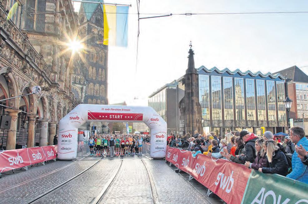 In weiten Teilen des Bremer Stadtgebiets sind heute Straßen gesperrt. Grund ist der SWB-Marathon (Start 9.55 Uhr). Nach Durchlauf des Feldes werden die Sperrungen schrittweise aufgehoben. Bei der BSAG kommt es zu Umleitungen für die Straßenbahnlinien 2, 3 und 8 sowie die Buslinien 20, 21, 22, 24, 25, 26, 27, 28, 33 und die Regionalbuslinien 630 und 670. Start und Ziel der verschiedenen Laufwettwerbe ist auf dem Marktplatz. Dort und an der Stecke hoffen die Läuferinnen und Läufer auf kräftige Unterstützung der Zuschauerinnen und Zuschauer. Foto: spospom