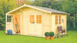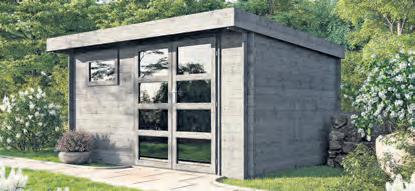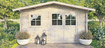 Bausatz aus Nadelholz unbehandelt, 2 Räume mit Zwischenwand, Sockelmaß: 427 x 280 cm, 34 mm Wandstärke, Doppel und Einzeltür mit Echtglas, inkl. Fußboden, ohne Dachpappe