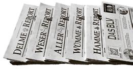 Internet: www.weserreport.de Druck: DruckHaus Delmenhorst GmbH Verbreitete Auflage: 267.910 Exemplare mit DELME REPORT, HAMME REPORT und WÜMME
