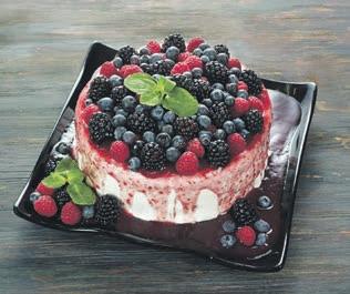 Aus eigener Herstellung: beschwipster Beerentraum Weichkäsetorte (72% Fett i.Tr.) mit Beeren, Feigensauce und Sekt, enthält Alkohol 1kg = 29,90 100g