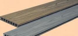 WPC-TERRASSENDIELEN MIT HOLZSTRUKTUR Wendeprofil: einseitig Teak/einseitig Vintage grau, 22,5 x 140 mm, Länge 300 cm, extra starke Spezialbeschichtung, sichtbare Holzstruktur, unsichtbare Befestigung