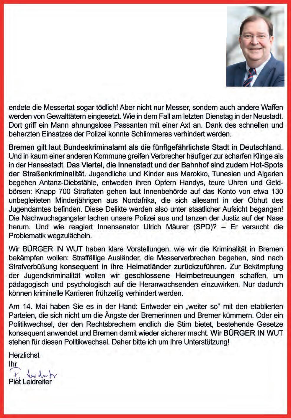 Die Polizei sei unterbesetzt und die Justiz überlastet. „Wir als CDU-Fraktion fordern seit Jahren mehr Personal, bessere Ausstattung für die Polizei, konsequente Strafverfolgung und eine klare Kante gegenüber Intensivtätern.“ CDULübke kurz: „Wir machen Bremen sicher.“