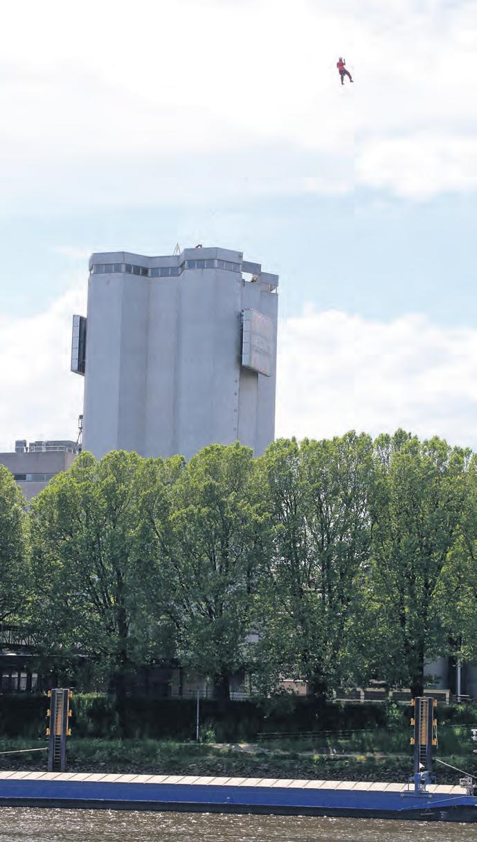 Brauerei gegenüber montiert worden. Am 18. und 19. Mai soll der Rekord aufgestellt werden. Am Ufer unterhalb der Stephanikirche dürfen Besucher das Spektakel bei Kaffee, Eis und kühlen Getränken von jeweils 14 bis 18 Uhr genießen. Eine Anfänger-Slackline am Boden soll zum Mitmachen animieren. Initiiert wurde „Bremen verbindet“ von Specht-Gruppen-Chef Rolf Specht, der auch AB Inbev und JDE Peet's ins Boot geholt hat. mas / Foto: Marcus Schmidt