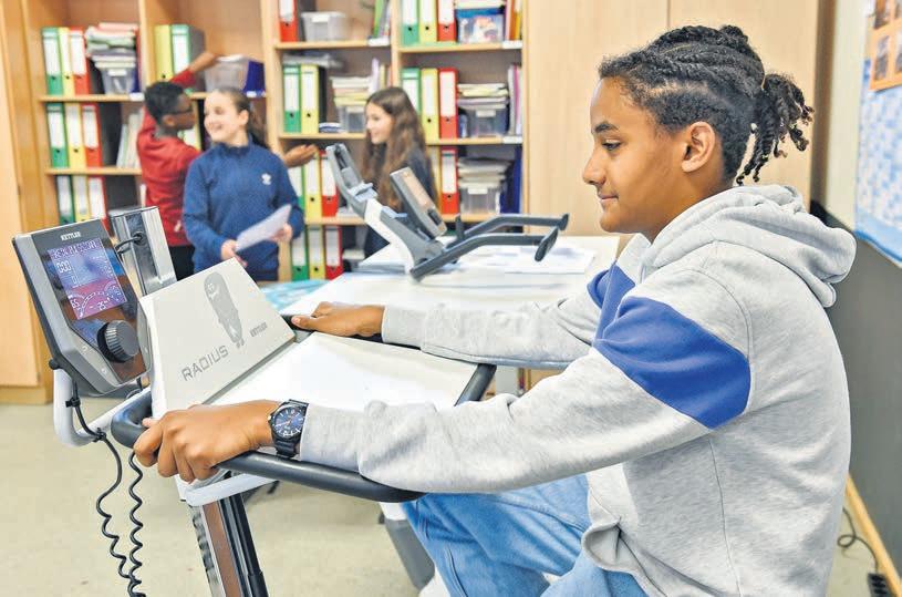 Die Schulzeit verbinden die meisten mit unbequemen Stühlen und Kreidetafeln. In den Klassenzimmern der Oberschule Ronzelenstraße, zeigt sich ein anderes Bild. Während einige Schülerinnen und Schüler an ihrem Schreibtisch sitzen, verfolgen andere den Unterricht auf Ergometern. Diese Möglichkeit, dem Unterricht zu folgen, läuft unter dem Lehransatz „Bewegte Schule“ und wurde jetzt durch Bewegungscoaches erweitert.
