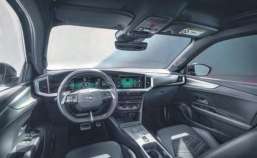 scheint nun noch klarer als bisher. Einige hier zuvor über Tasten steuerbare Einstellungen wurden in den zentralen Farb-Touchscreen integriert. Das Cockpit wirkt so frischer und wertiger, wie aus einer höheren Fahrzeugklasse. Zudem sind alle im Innenraum verwendete Stoffe aus Materialien mit Recyclinganteil gefertigt. Antriebsseitig haben Mokka-Käufer die Auswahl – vom effizienten Benziner zum Einstiegspreis von 26.740 Euro sowie zwei elektrifizierte Alternativen. So ist das kompakte SUV sowohl als moderner Hybrid mit 48-Volt-Technologie (ab 29.740 Euro) wie auch als batterie-elektrischer, lokal emissionsfreier Mokka Electric erhältlich. Der Hybrid kombiniert einen 100 kW /136 PS starken 1,2-Liter-Turbobenziner mit einem 21 kW / 28 PS-Elektromotor und einem neuen elektrifizierten Sechsgang-Doppelkupplungsgetriebe. Vollelektrisch ist der neue Mokka ab 36.740 Euro nun ausschließlich mit dem 115 kW / 156 PS starken Elektromotor und 54 kWh-Akku zu haben. Damit lassen sich bis zu 403 Kilometer emissionsfrei bis zum nächsten Ladestopp zurücklegen.