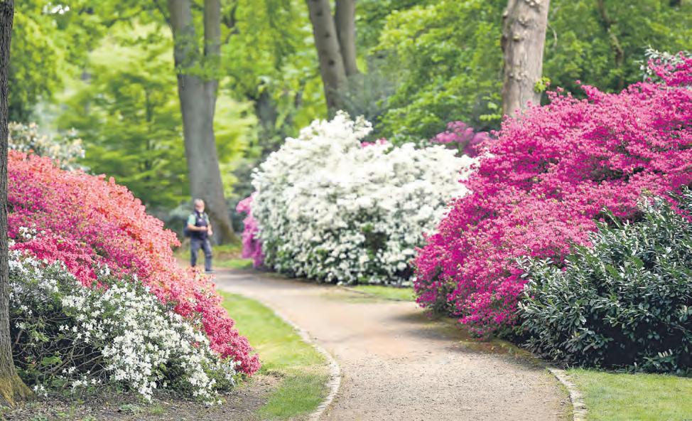 Bereits Anfang Mai entfaltet der Rhododendronpark wieder sein farbenprächtiges Gesicht: Die Hauptblüte der Rhododendren und Azaleen hat begonnen und verwandelt das Parkgelände in ein leuchtendes Farbenmeer aus Rot, Blau, Weiß und Violett. Besonders beeindruckend ist die Blütenpracht entlang der Marcusallee mit den bis zu sieben Meter hohen Rhododendronbüschen im ältesten Teil des Parks. Der Rhododendronpark in Horn landete zudem in dieser Woche laut einer Google-Auswertung des Reiseanbieters Fit Reisen auf Platz zwei der schönsten Parkanlagen Deutschlands. pb / Foto: Schlie