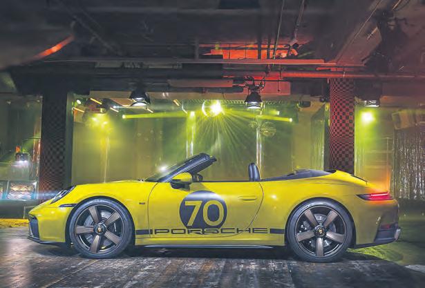 limitierte Cabriolet verkörpert die Essenz der 1970er- und frühen 1980erJahre. Im Rahmen der Heritage Design Strategie entstanden, ist das Sammlerstück bereits das dritte 911-Modell, bei dem Porsche mit Hilfe ikonografischer Designelemente früherer Fahrzeuge eine Ära wiederaufleben lässt. Die technische Basis für den 911 Spirit 70 bildet das aktuelle 911 Carrera GTS Cabriolet mit effizientem Performance-Hybrid. Bestellt werden kann der 911 Spirit 70 ab sofort für 240.000 Euro. Zu den europäischen Händlern kommt er in Kürze.