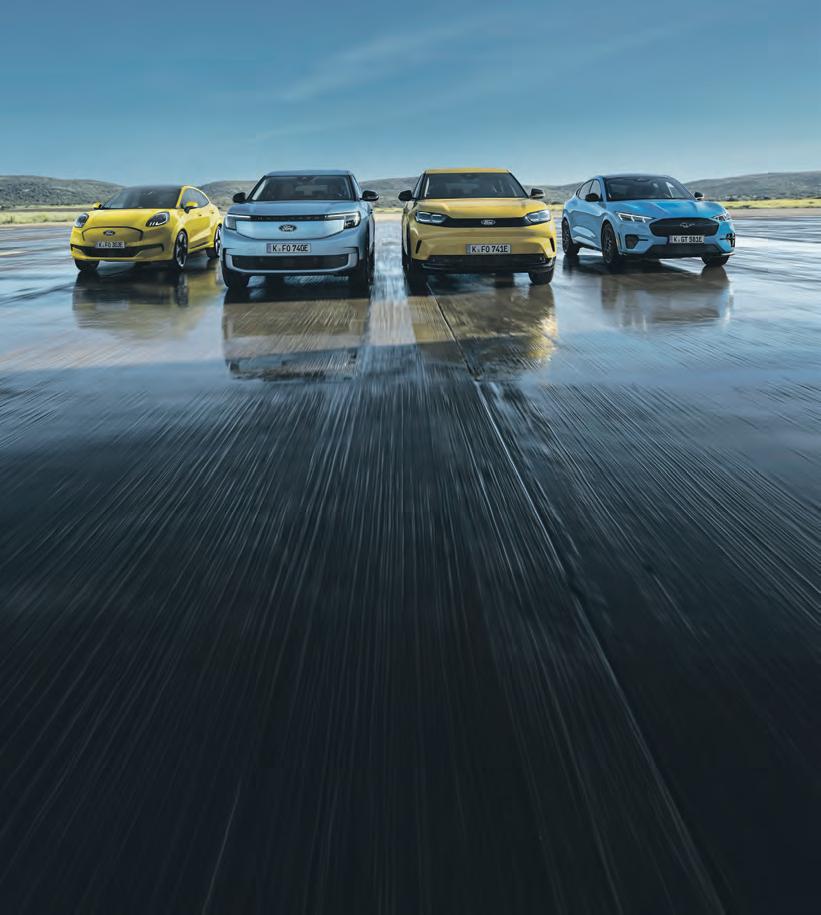 FordMustangMach-EGT:Energieverbrauch(kombiniert)*:21,0kWh/100km;CO2-Emissionen(kombiniert)*:0g/km;CO2-Klasse:A;ElektrischeReichweite**:515km FordPumaGen-E:Energieverbrauch(kombiniert)*:14,5-13,1kWh/100km;CO₂-Emissionen(kombiniert)*:0g/km;CO₂-Klasse:A;ElektrischeReichweite**:347-376 km FordExplorerStyle:Energieverbrauch(kombiniert)*:17,5–16,3kWh/100km;CO₂-Emissionen(kombiniert)*:0g/km;CO₂-Klasse: A;ElektrischeReichweite**:352–378 km