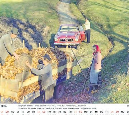 Die Besonderheit des Kalenders sind die Fotos. Die digitale Restaurierung der rund 70 Jahre alten 9x12 cm-Negative macht die hohe Qualität der Aufnahmen wieder sichtbar. Der Borgward-Kalender im DIN-A4-Querformat mit Spiralbindung kostet 14,95 Euro portofrei und ist im Internet unter www.peterkurze.de erhältlich.