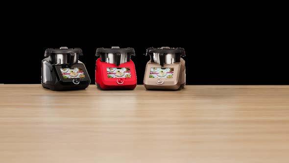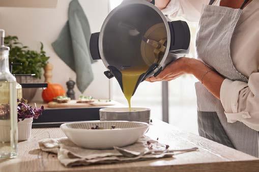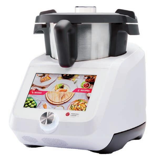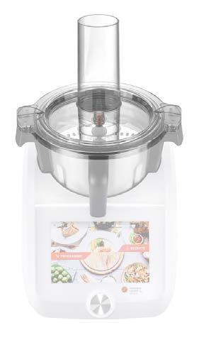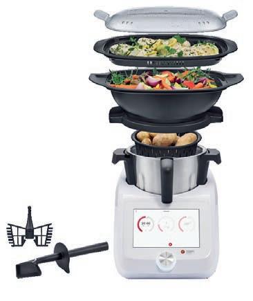 Typ „SKMS 1200“ Mit vielen Video Guided Cooking- und Port ektes Wiegen im Topf (bis 5 kg). Mit Linkslauf zum Kneten und Rühren. 10-stufige Geschwindigkeitseinstellung und Turbofunktion. Temperatur von 37–130 °C. Leistungsaufnahme: max. 1.200 W. Je Stück