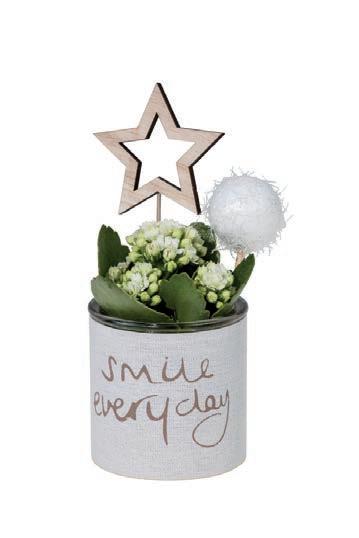Inkl. Dekostecker. Höhe (inkl. Topf): ca. 16 cm. Glastopf: Ø = 8 cm. Kulturtopf: Ø = 6 cm. Je Stück