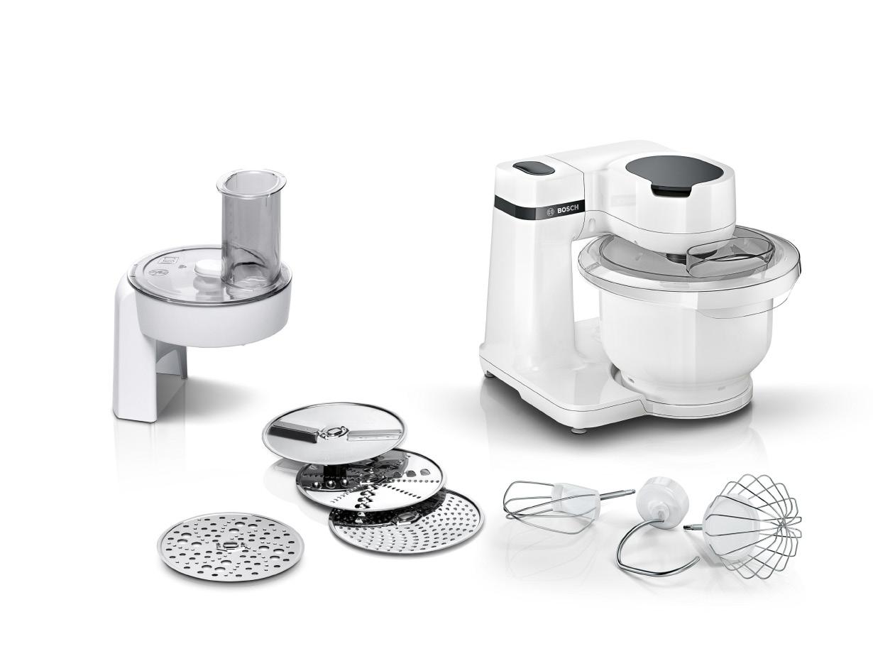 Typ „MUMS2AW01“. Mit 3D-PlanetaryMixing – schnelles und perfektes Vermischen der Zutaten. Inkl. Schlag-, Rührbesen, Knethaken, Durchlaufund 3 Reibescheiben.