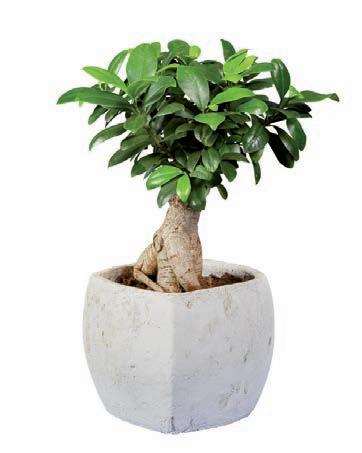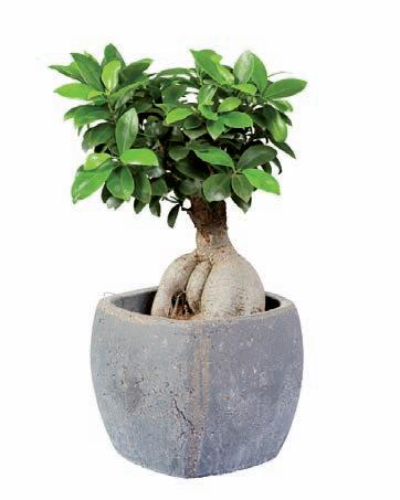 Versch. Sorten (z.B. Ficus Ginseng). Höhe (inkl. Topf): ca. 40 cm. Keramikübertopf: Ø = 15 cm. Kulturtopf: Ø = 13 cm. Je Topf