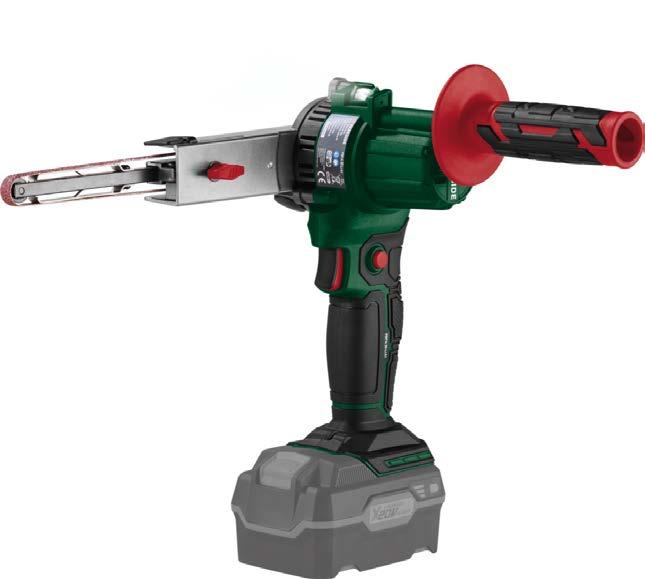 Typ „PBFA 20-Li A1“. Optimaler Bandlauf durch manuelle Schleifbandjustierung. Inkl. Adapter zum Anschluss an externe Staubabsaugung. Werkzeugloser Schleifbandwechsel. Leerlauf-Bandgeschwindigkeit: 600–1.700 min-1 Bandabmessung: 9 x 533 mm. Je Stück