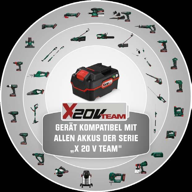 Typ „PAP 202 A1 + PLG 20 C1“. 20-VLi-Ionen-Akku mit LED-Zustandsanzeige. Ladegerät mit automatischer Abschaltung und LED-Ladeindikator. Mit Vorrichtung zur Wandhalterung.