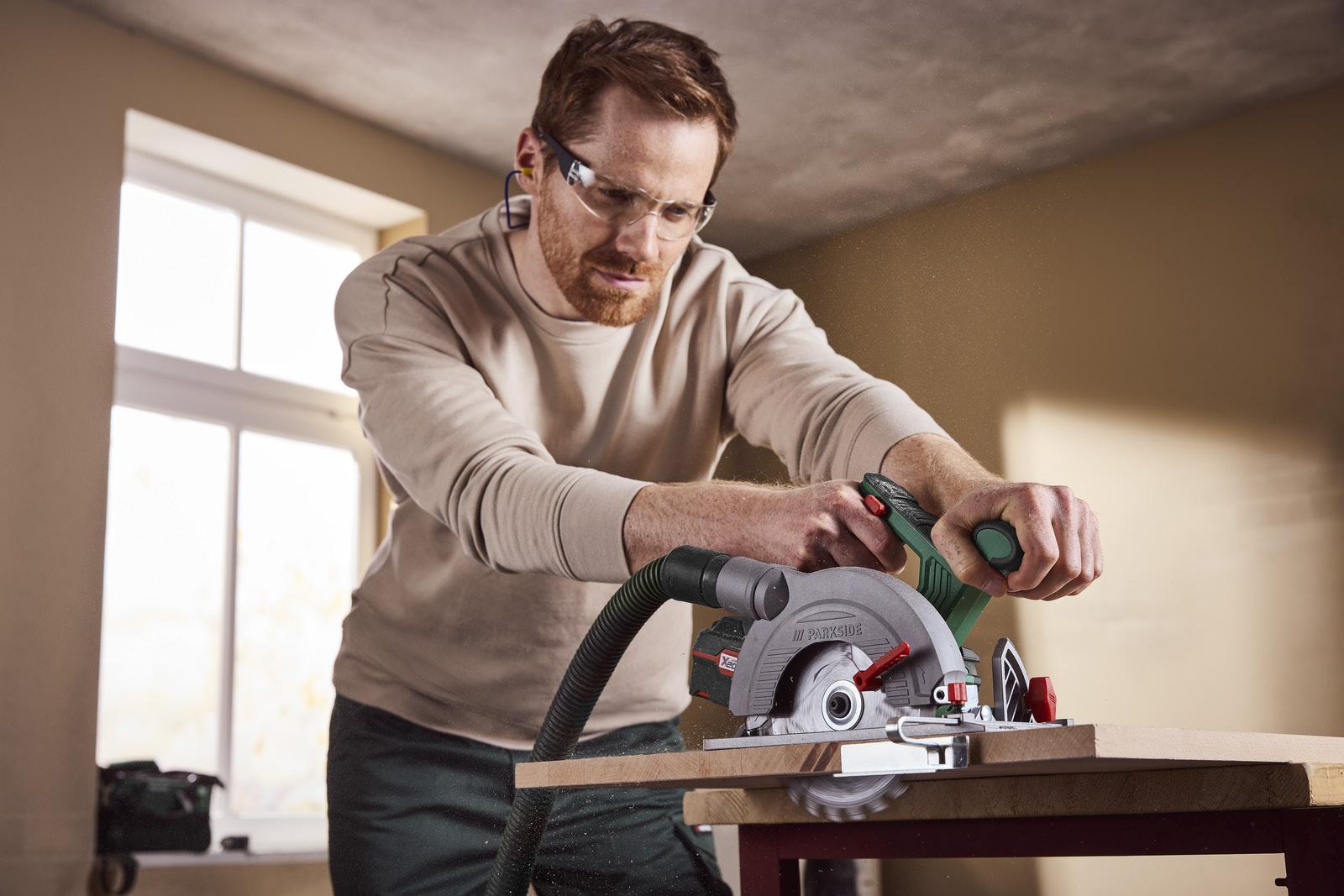 Typ „PHKSA 20-Li C4“. Schnitttiefe und Schnittwinkel stufenlos einstellbar. Schnittwinkel: 0–45°. Max. Schnitttiefe (in Holz) bei 0°: 53 mm, bei 45°: 38,5 mm. Je Stück