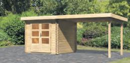 KARIBU GARTENHAUS TALKAU 6 / WÜMME 5 Bausatz aus Nadelholz unbehandelt, Außenmaß ca. 274 x 274 cm, Sockelmaß ca. 270 x 270 cm, Wandstärke 28mm inkl. Doppeltür, inkl. Zubehör, ohne Fußboden,